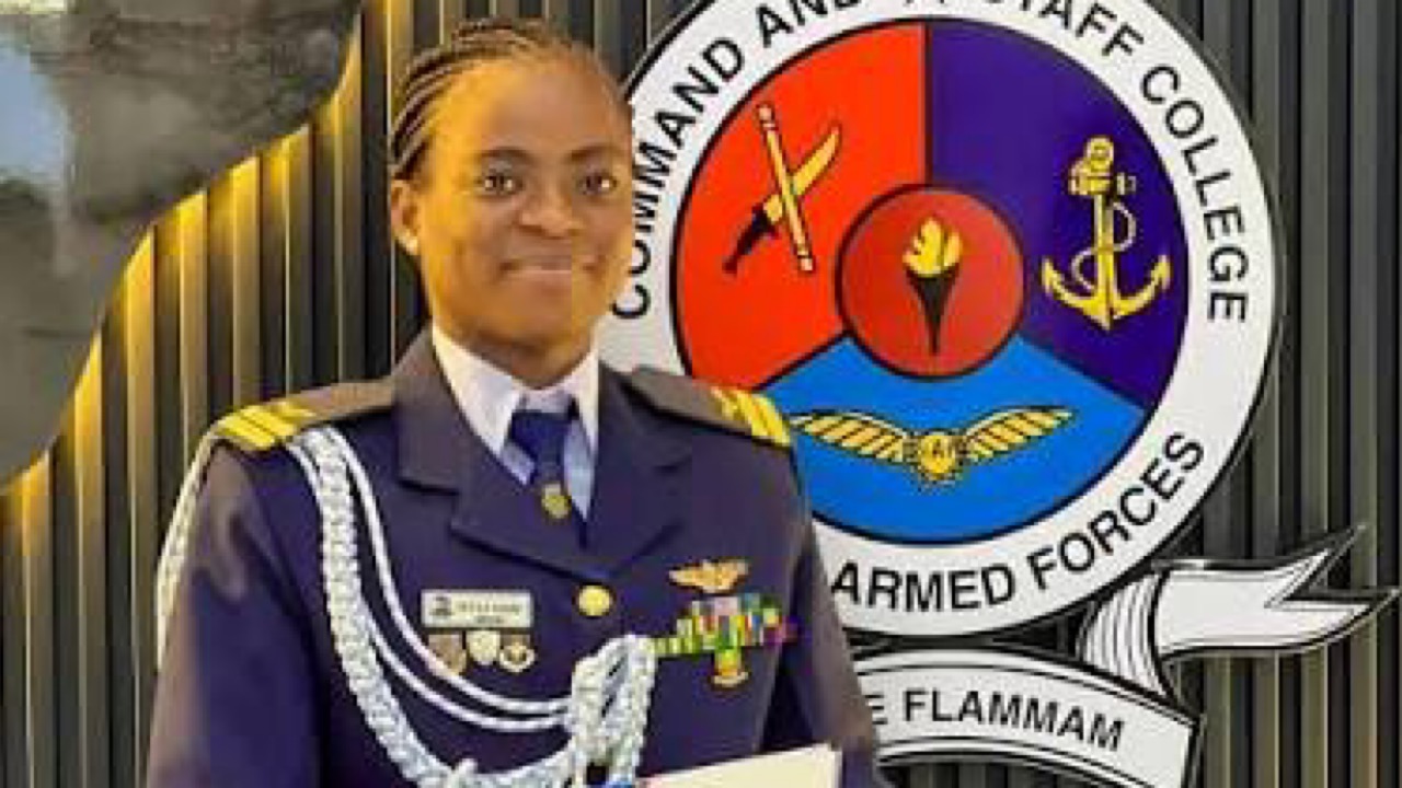 Flt. Lt. Kafayat Sanni, Nigeria’s first female fighter pilot, has made history at the prestigious Ghana Armed Forces Command and Staff College, Accra.