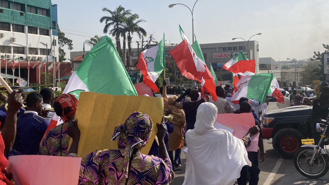 Supporters of the Nyesom Wike-led faction of the Peoples Democratic Party (PDP) have taken over the surrounding streets of Wadata Plaza, the edifice housing the PDP headquarters, Wuse, Zone 5, Abuja.